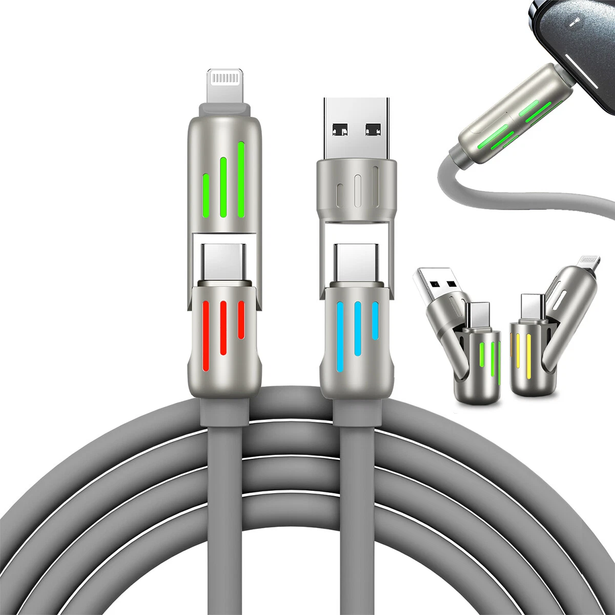 - 🔌 4-in-1 Multi-Connector Design – USB-C & Lightning compatibility