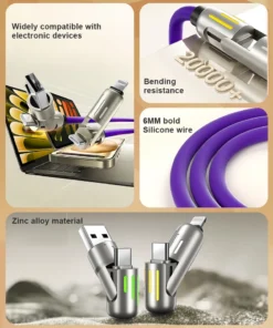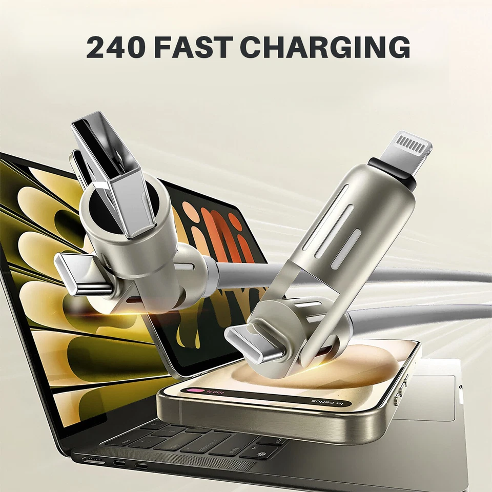 240W 4-in-1 USB-C Data Cable – Fast Charging & Multi-Device Power Delivery Cable