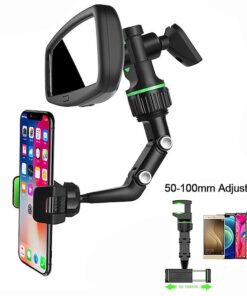 360° Adjustable Rear-View Mirror Car Phone Holder – Hands-Free Driving Mount