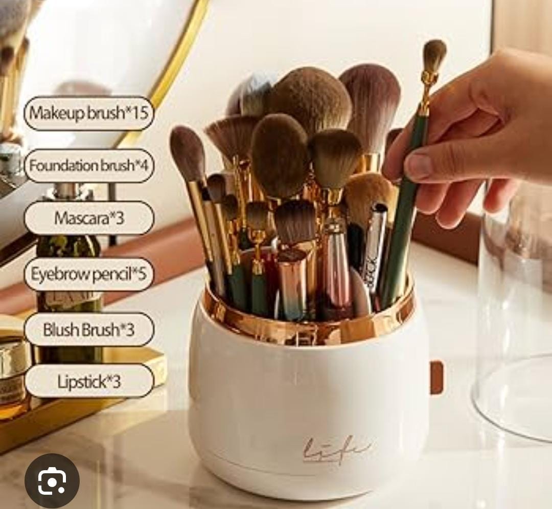 Say goodbye to cluttered dressing tables and messy makeup drawers with this rotating makeup brush organiser, designed to bring order, elegance, and convenience to your daily beauty routine. Whether you’re a professional makeup artist or someone who loves looking good every day, this organiser helps you keep your brushes, cosmetics, and beauty tools neatly arranged and easy to access.