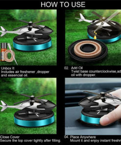 Upgrade your car’s interior with style and freshness using the solar car air freshener helicopter design diffuser with spinning rotor solar-powered interior decoration accessories for car home or office. This unique and eye-catching accessory combines functionality with modern design, making it a must-have for anyone who wants their space to smell fresh while looking stylish.