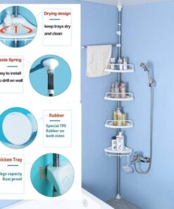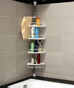 Telescopic Bathroom & Kitchen Corner Shelf Organizer – 4 Tier Adjustable Rack